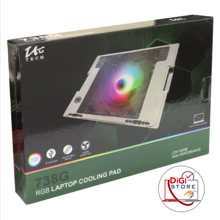 پایه خنک کننده تنظیم ارتفاع دار لپ تاپ مدل 738G محصولی زیبا از برند با کیفیت یوسیتک . این کالا دارای 5 حالت تنظیم ارتفاع لپ تاپ و همچنین دارای هاب USB و کلید روشن و خاموش کردن میباشد. توری روی کالا که در تماس با لپ تاپ میباشد از جنس فلز طراحی شده که خنکی بیشتر به لپ تاپ برسد همچنین پایه نگهدارنده محصول نیست برای مقاومت دربرابر لپ تاپ های سنگین فلزی طراحی شده است . فن محصول در عین بیصدا بودن دارای قدرت بالا و همچنین دارای چراغ های rgb روشن شونده و تغیر رنگ دهنده خودکار میباشند.