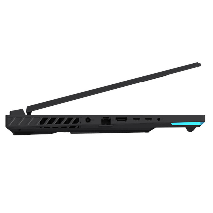 ایسوس برای جا دادن صفحه نمایش جدید و بزرگتر G16 نسبت به مدلهای قبلی، بدنه آن را کاملا از نو طراحی کرد. این طراحی جدید فوقالعاده زیبا است. لید لپ تاپ از جنس آلومینیوم و سایر بخشهای بدنه آن از جنس پلاستیک هستند. با این وجود پلاستیک بهکاررفته در بدنه این لپ تاپ از نوع ارزان و بیکیفیت نیست. ROG Strix G16 در هر زمینهای از متریال باکیفیت استفاده کرده است. محصولات سری ROG Strix معمولا نورپردازی RGB زیادی دارند. اما در مدل 2023 G16 شاهد ظاهر سادهتری نسبت به گذشته هستیم. نورپردازی RGB در این لپ تاپ به یک نوار در زیر آن و کلیدهای کیبورد خلاصه شده است. شما میتوانید رنگ نور هر کلید را به صورت جداگانه تنظیم کنید. از نظر تعداد پورتها هم با لپ تاپ کاملی طرف هستیم. در قسمت راست بدنه دو پورت USB 3.2 Gen2 Type-A دیده میشود. سایر پورتها در قسمت چپ بدنه قرار گرفتهاند؛ یک پورت تاندربولت 4، یک پورت USB 3.2 Gen2 Type-C، یک پورت Ethernet، یک پورت HDMI 2.1، یک جک هدفون 3.5 میلیمتری و یک درگاه ورودی شارژر. در هر دو طرف لپ تاپ و در پشت آن دریچههای هوایی بزرگی دیده میشوند تا گرمای تولید شده از Core i7 13650HX و RTX 4060 را خارج کنند.